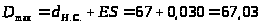 Задана посадка Ø67 H7/e8. Предельное отклонение отверстия Ø67 H7: верхнее ES=30мкм; нижнее EJ=0мкм. Предельное отклонение вала: верхнее es=-66мкм; нижнее ei=-106мкм.