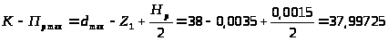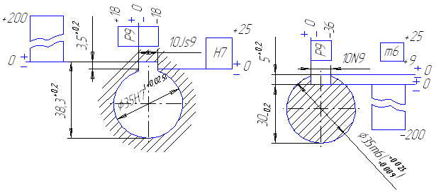 Задана посадка Ø38 T7/h7. Предельное отклонение отверстия Ø38 T7: верхнее ES=-39мкм; нижнее EJ=-64мкм. Предельное отклонение вала: верхнее es=0мкм; нижнее ei=-25мкм.