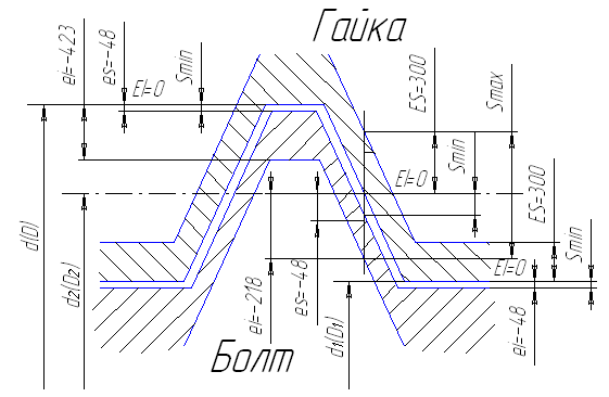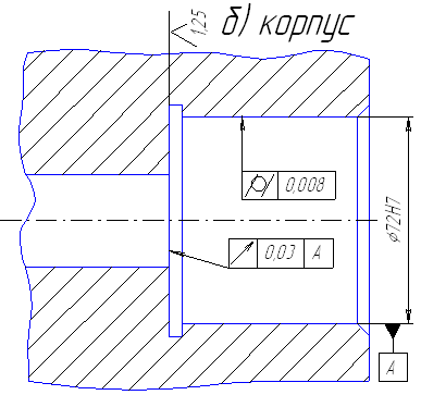 Задана посадка Ø55 H8/r6. Предельное отклонение отверстия Ø55 H8: верхнее ES=46мкм; нижнее EJ=0мкм. Предельное отклонение вала: верхнее es=60мкм; нижнее ei=41мкм.