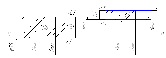 Изобразим схему посадки Ø55 H8/r6 на Рисунке 1.2.