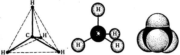 Рис. 1 Электронная и обычная структурные формулы метана и этана.