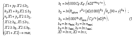 Несмотря на достаточно большое количество исследований по использованию инструментов из сверхтвердых материалов, вопросы регламентации рациональной области их применения и расчеты оптимальных режимов резания остаются достаточно актуальными. Одним из наиболее распространенных методов оптимизации в настоящее время является метод линейного программирования, позволяющий осуществлять одновременную оптимизацию скорости резания и подачи с учетом действующих при резании ограничений по критерию максимальной производительности. Для линейной целевой функции и линейных ограничений достаточно хорошо разработан и широко используется графический метод поиска оптимальных режимов резания. Несмотря на простоту и наглядность, этот метод не позволяет теоретически анализировать получаемые результаты в зависимости от условий обработки. Выполненные в этом направлении разработки не учитывают особенностей функционирования инструментов из сверхтвердых материалов.