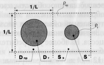 Базовий локальний параметр автотипного растрового зображення S – відносна площа друкарських елементів (растрових точок). Вона визначається відношенням їхньої абсолютної площі S' і одиничної площі (осередку) растрового зображення S>е> (рис. 1)*. Остання дорівнює квадрату кроку растрової лініатури 1/L2, тому