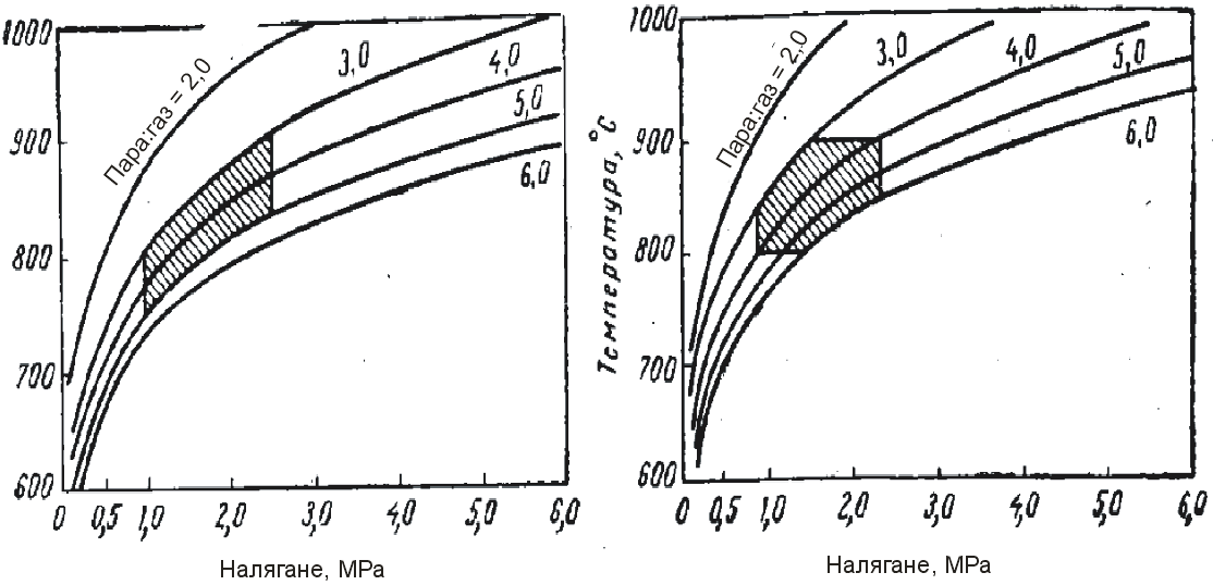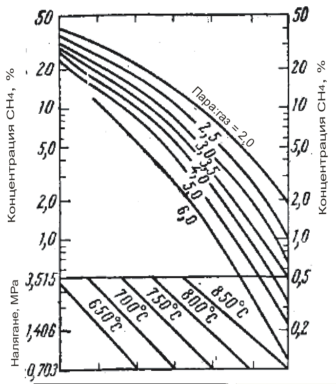 Равновесното съдържание на никелов сулфид при конверсия се снижава с увеличаване на температурата. За различните катализатори пределно допустимата концентрация на H>2>S в газа в зависимост от съдържанието на никел и активността на катализатора е (в мг/м3):