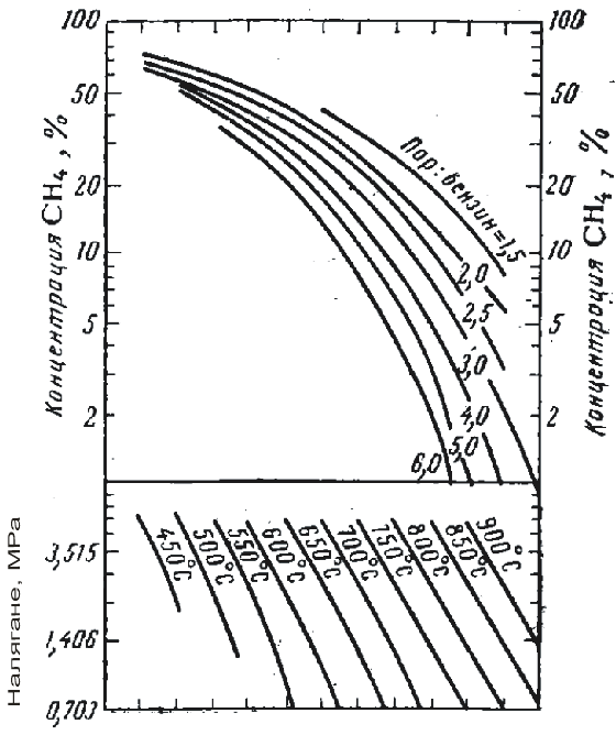 Термодинамически в дадения температурен интервал е възможно също да протичат реакции на хидрокрекинг на наситените въглеводороди с образуване на метан: