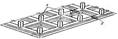 Сплошные фундаменты применяют при неблагоприятных геологических и гидрогеологических условиях площадки строительства. Конструктивно их выполняют так, что они образуют сплошную железобетонную плиту под всем зданием или сооружением толщиной от 500 до 1500 мм.