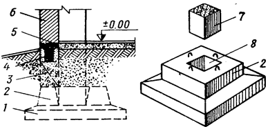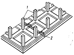 Укладку железобетонных фундаментных балок выполняют по обрезам фундамента между подколонниками или их опирают на специальные бетонные столбики, которые бетонируют на месте при установке колонн каркаса (рисунок 1.14).