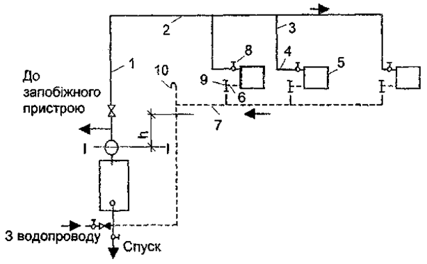 Ця схема передбачає також роботу на рециркуляційному режимі. Для цього закривається клапан 1 і відкривається клапан 2 (рис.9) при одночасному закритті клапану 4.