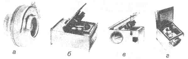 Рис.12. Канальні вентилятори. їх конструкції: а - корпус у вигляді обичайки; б - коробчастий корпус з прямокутними патрубками; в - коробчастий корпус з круглими патрубками; г - радіальний вентилятор двостороннього всмоктування.