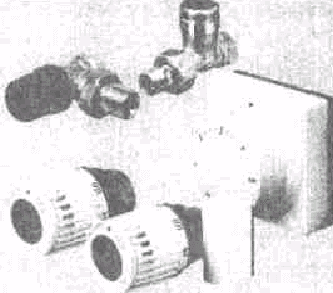 В сучасних системах опалення для автоматичного підтримування температури повітря в приміщенні застосовують терморегулятори, які установлюються на вході в радіатор системи опалення. Ці пристрої дозволяють економити до 20% теплової енергії і забезпечують підтримування постійної температури приміщення з точністю до 1 °С. Наприклад, радіаторні терморегулятори фірми Danfoss (рис.5) використовуються для будь-яких систем водяного опалення будинків, обладнані вмонтованим датчиком, захистом від морозу, з діапазоном температури 6-26 °С, пристроєм для обмеження та фіксації настройки температури. Конструкція терморегулятора показана на Рис.6. Чутливий елемент представляє собою термобалон, заповнений рідиною з високим коефіцієнтом об'ємного розширення. Під дією температури повітря відбувається стискання або розширення сильфону термобалона, який діє на шток, закриваючи або відкриваючи клапан.