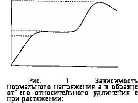 Реальные материалы обладают технической прочностью, основные характеристики которой удобно рассмотреть с помощью диаграммы растяжения образца из пластичного материала (рис.1).