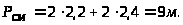 L = 2⋅(0,49 + 0,159) ⋅ sin30° = 0,65 м.