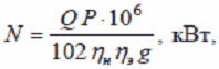 Мощность на привод насоса