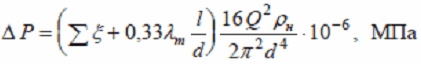 где Qi - расход через один из параллельных трубопроводов, м3/с; i – количество параллельных участков; Δ PΣ - суммарные потери давления в разветвленном трубопроводе, МПа; Δ Pi - потери давления в одном из параллельных трубопроводов, МПа.