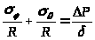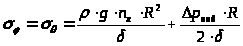 Окружное напряжение определяем из уравнения Лапласа