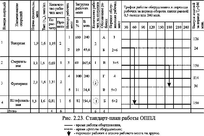 Рассмотрим пример расчета величины межоперационных оборотных заделов на ОППЛ, стандарт-план работы которой приведен на рис. 1