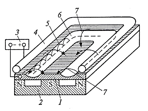 На Рисунок 9 показана схема лабораторной установки для получения углеродных нанотрубок. Графитовый электрод 1 распыляется в гелиевой плазме дугового разряда; продукты распыления в виде трубок, фуллеренов, копоти и т.п. осаждаются на поверхности катода 2, а также на боковых стенках охлаждаемого реактора. Наибольший выход трубок наблюдается при давлении гелия около 500-600 кПа; параметры дугового режима, геометрические размеры электродов, длительность процесса, размеры реакционного пространства так же оказывают значительное влияние. После синтеза концы трубок обычно закрыты своеобразными «шапочками» (полусферическими или коническими). Важным элементом технологии нанотрубок является их очистка и раскрытие концов, что выполняется различными методами (окисление, обработка кислотами, обработка ультразвуком и т.д.).