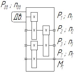Р3 = Р2 · ηцп · ηп = 18,53 · 0,96 · 0,99 = 17,61 кВт;