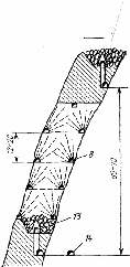 Как правило, система подэтажных штреков применяется при разработке руд невысокой ценности. При этой системе разработки этаж разделяется на блоки,, состоящие из камеры 3, междукамерного целика 12, потолочины 6 и днища 5. Очистные работы ведут в две стадии. Первоначально отрабатывают камеры, а затем междукамерные целики, потолочины и днище. Потолочину и днище вышележащего горизонта рассматривают часто как единое целое - междуэтажный целик.