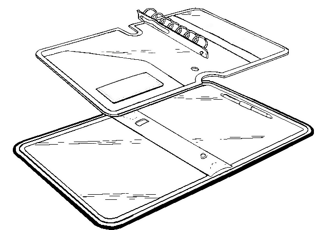 Сравнение с прототипом выявило, что такие признаки как крепление кольцевого механизма к обложке папки и карманный вкладыш являются новыми, что свидетельствует о соответствии критерию «новизна».