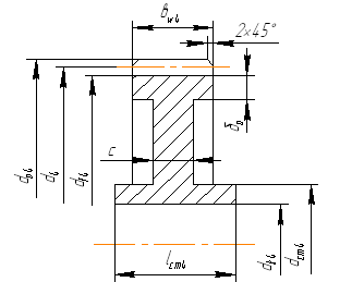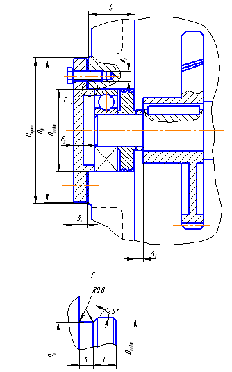 Толщина фланцев крышек подшипников равна диаметру отверстий Δ=d>0>=9 мм
