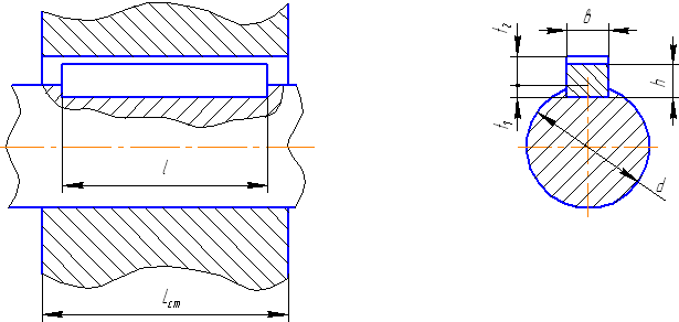 Шпонки призматические со скругленными торцами ГОСТ 23360-80. Параметры шпонки в таблице 6 (Приложение 1)