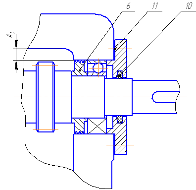 - расстояние между наружным кольцом подшипника ведущего вала и внутренней стенкой корпуса А>3>= δ =8 мм;