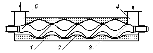 Одногвинтові (героторні) насоси (екструдери). У циліндричний корпус насоса 1 (рис. 3-21) із внутрішньою профільованою гвинтовою поверхнею 2, що зветься обоймою, встановлюється однозахідний гвинт 3. Між обоймою й гвинтом утворюються замкнуті порожнини 4, заповнені при роботі насоса рідиною; при обертанні гвинта вони переміщуються уздовж осі насоса.