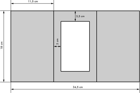 Показанная схема - это прямоугольник размером 18х34,5 см, состоящий из трех одинаковых прямоугольников - сторон открытки. Это позволит вам скрыть "заднюю" сторону вышивки. Для представленных дизайнов используйте плотную бумагу белого, серо-голубого и розового цветов.