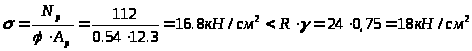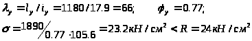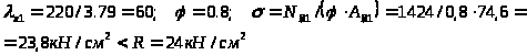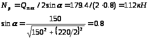 А>Р>=12,3см2; i>min>=1,78; λ>max>=l>p>/i>min>=220/1,78=105; l>p>=h>H>/sinα=150/0.8=187.5
