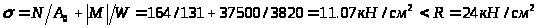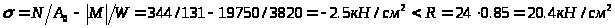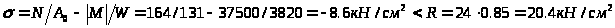 Прочность стыкового шва проверяем по нормальным напряжениям в крайних точках сечения надкрановой части. Площадь шва равна площади сечения колонны.
