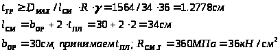 Толщину стенки траверсы определяем из условия смятия по формуле: