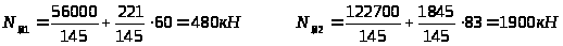 В наружной ветви N>в2>=184582/145+122700/145=1890 кН.