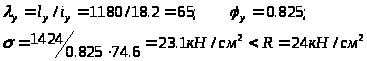Для подкрановой ветви A>в1>=N>в1>/φRγ; задаемся φ=0,80; R=240МПа=24кН/см2 (сталь С245), тогда A>в1>=1424/0,8024=74,2 см2.