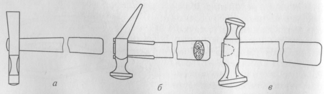Рис. 2.11. Молотки: а — заготовочный; б — сапожный; в — плиточный