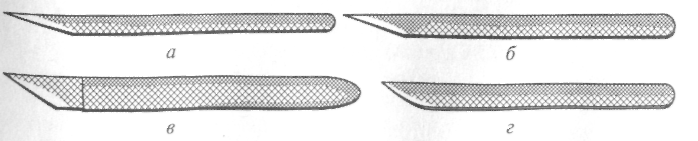 Рис. 2.1. Универсальные ножи: а, б — закройные; в, г — сапожные