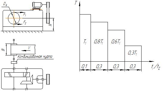 Кинематическая схема привода. Режим нагружения
