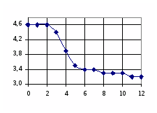 Полученная сеть прогнозирует показатели качества сыворотки практически безошибочно, относительная погрешность не превышает 1 % при прогнозировании активной и титруемой кислотности и показателя преломления, 3 % - при прогнозировании общей микробиологической обсемененности. Для проверки соответствия сети поставленной задаче нейронную сеть тестировали с применением проб сыворотки, не входивших в обучающую выборку (табл. 4).