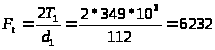 F>t> = 6232 H, F>r> = 2283 Н, F>a> = 841 Н, l>2 >= 112 мм.