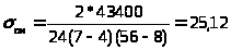 Ведущий вал: d = 24 мм; b х h = 8 х 4 мм; t>1> = 4 мм; длина шпонки l = 56 мм; момент на ведущем валу Т>1> = 43400 Н*мм;
