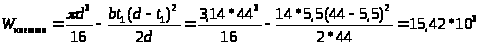 Момент сопротивления кручению при d = 44 мм; b = 14 мм; t>1> = 5,5 мм