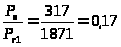 в которой радиальная нагрузка Р>r>>1> = 1871 Н; осевая нагрузка Р>а> = F>a> = 317 Н;V = 1 (вращается внутреннее кольцо); коэффициент безопасности К>б> = 1,2; К>Т >= 1.