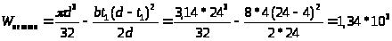Момент сопротивления кручению при d = 24 мм; b = 8 мм; t>1> = 4 мм