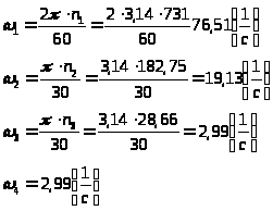 Найдем частоту вращения на валах: