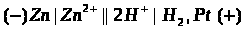 Электроны от анода по внешней цели протекают к катоду. Соответствующая схема такого гальванического элемента записывается следующим образом: