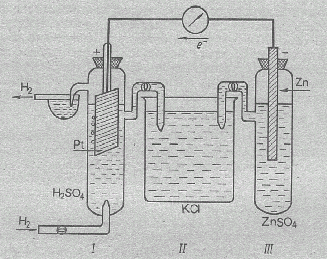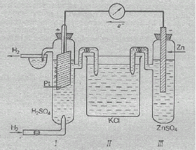 I – водородный электрод, II – солевой мостик, III – измеряемый электрод.