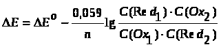уравнение Нернста (при 298,15 К) имеет вид