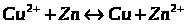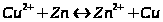 суммарный окислительно-восстановительный процесс самопроизвольно осуществляется при условии протекания восстановительной реакции только на медном электроде, а окислительной – на цинковом. Следовательно, в объединенном уравнении электродная реакция процесса с меньшим потенциалом записывается в обратном направлении, а процесса с большим потенциалом – в том виде, в каком она представлена в таблице, т.е. в форме процесса восстановления: