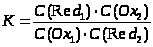 Отношение концентраций представляет собой выражение константы равновесия окислительно-восстановительного процесса: