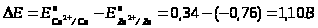 Из последнего выражения следует, что термодинамическим условием самопроизвольного протекания процесса в прямом направлении является положительное значение э.д.с (Е), когда система с более высоким значением электродного потенциала выступает в качестве окислителя, т.е. восстанавливается. Например, в гальваническом элементе, состоящем из двух электродов, характеризующихся следующими параметрами: